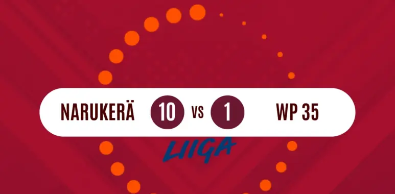 Narukerä vs Wp 35, Lopputulos: 10–1 (4–1) Tänään ei jäänyt epäselvyyttä ottelun voittajasta eikä paremmasta. Kotijoukkue tuli peliin kovalla intensiteetillä, käytti paikkansa tehokkaasti ja karkasi jo avausjaksolla ratkaisevaan johtoon. Vierasjoukkue sai toki omat hetkensä ja kavensi 4–1:een, mutta toisella jaksolla kotijoukkue iski lisää ja venytti eron lopulta murskalukemiin. Ottelun maalit: 1–0 (9’) Paavola Eero, syöttö: Vuopio Joni2–0 (15’) Arponen Eelis, syöttö: Aaltonen Ville3–0 (18’) Kujansuu Veeti, syöttö: Sirén Lauri4–0 (27’) Kujansuu Veeti, syöttö: Arponen Eelis4–1 (44’) Nissinen Niko, syöttö: Tauschi Jyrki5–1 (47’) Kujansuu Veeti, syöttö: Aaltonen Ville6–1 (62’) Vuopio Joni (kl), syöttö: Paavola Eero7–1 (71’) Arponen Rasmus, syöttö: Paavola Eero8–1 (80’) Aaltonen Ville, syöttö: Paavola Eero9–1 (81’) Kujansuu Veeti, syöttö: Paavola Eero10–1 (83’) Aaltonen Ville (kl), syöttö: Paavola Eero Ratkaisun avaimet Pahoittelu sarjataulukon järjestyksestä Pahoittelut siitä, että alemman jatkosarjan virallisessa sarjataulukossa Narukerä on väärässä kohdassa – oikea paikka on taulukon kärjessä. Valitettavasti Jääpalloliiton tulospalvelujärjestelmässä (Torneopal) on ollut ongelmia koko kauden ajan, ja ne ovat näkyneet ajoittain niin ottelutapahtumien kirjauksissa kuin sarjataulukoidenkin järjestyksissä. Toivotaan, että tekniset häiriöt olisivat nyt viimein takanapäin ja loppukausi saadaan vietyä maaliin sujuvalla, luotettavalla tulospalvelulla. Samalla pahoittelemme kaikille joukkueille, toimihenkilöille ja seuraajille aiheutunutta haittaa. Tilanteen normalisoituessa myös sarjatilanteen seuranta, otteluraportointi ja tiedottaminen palautuvat sille tasolle, jonka kilpailutoiminta ansaitsee.