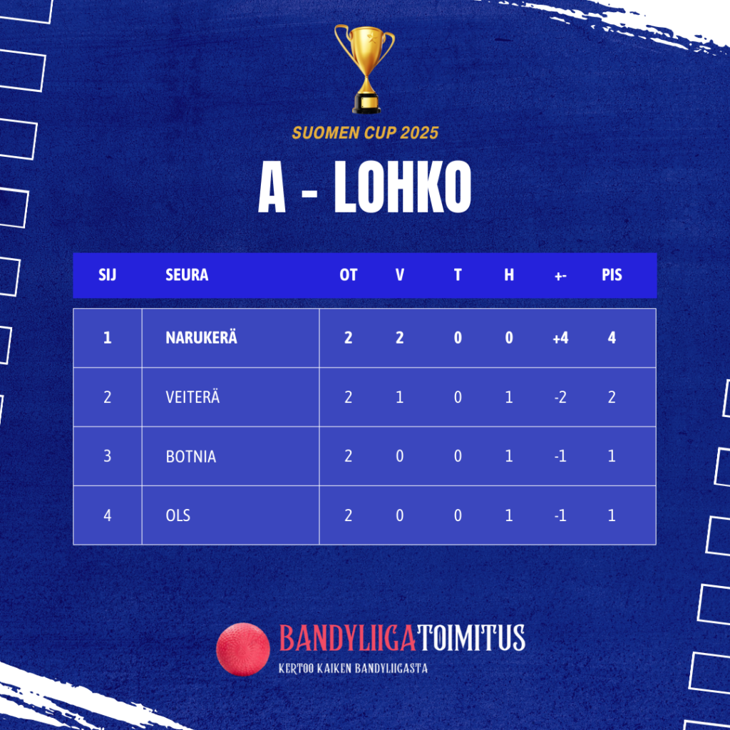 Kotijoukkue Narukerä on näyttänyt olevansa valmis Bandyliigan alkamiseen, ja näin he myös johtavat lohkoa. Veiterä ei vielä ole esittänyt ehkä aivan parastaan? Botnia on todella kapealla rosterilla taistellut hyvin. OLS ei myöskään ole vielä näyttänyt, miten se lähtee Bandyliigaan.