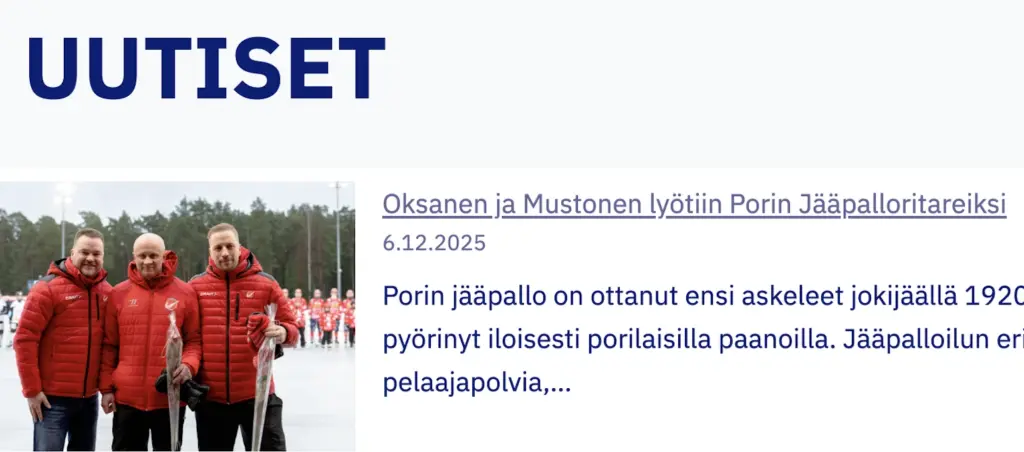 Jääpallo elää vahvasti perinteestä, yhteisöllisyydestä ja sitoutuneista tekijöistä. Jos haluamme lajin kasvavan ja säilyvän elinvoimaisena, meidän on huolehdittava myös siitä, miltä näytämme ulospäin. Ajantasainen verkkosivu ei yksin ratkaise näkyvyyskysymystä, mutta se on osa kokonaisuutta. Se viestii ammattimaisuudesta, aktiivisuudesta ja siitä, että lajilla on suunta.