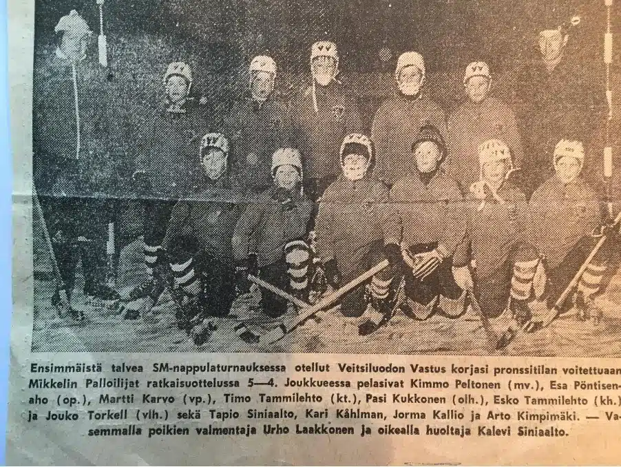 Veitsiluodon Vastuksen huippuvuosi osui vuoteen 1974, jolloin seura voitti Bandyn Suomen mestaruuden sekä miehissä, naisissa että kaikissa juoniori-ikäluokissa. Aikamoinen saavutus. Lisäksi samana vuonna Vastus voitti myös jalkapallon D- juniorien Suomen mestaruuden.