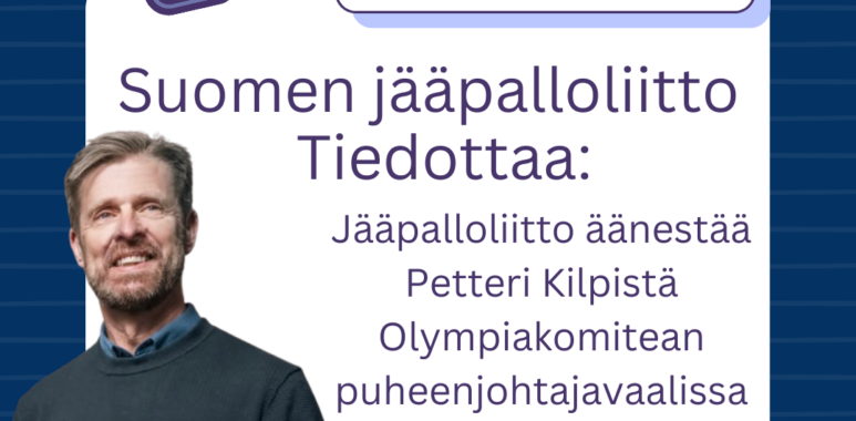 Hyvien ehdokkaiden joukosta Jääpalloliitto tukee monien muiden lajien tavoin Petteri Kilpisen valintaa Suomen Olympiakomitean puheenjohtajaksi.