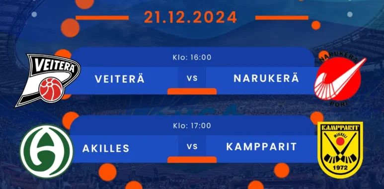 Veiterä kohtaa kotikentällään Narukerän. Kotijoukkue Veiterä on sarjan kärkiporukoissa ja lähtee otteluun selvänä suosikkina, mutta Narukerä on tunnettu taistelutahdostaan ja voi yllättää kenet tahansa. Tästä osoituksena oli viime keskinäinen ottelu, tämän Narukerä vei 3-0 lukemin.