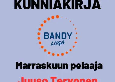 Botnian viimeinen lukko Juuso Tervonen Helsinkiläistä Botniaa edustava maalivahti Juuso Tervonen on valittu miesten Bandyliigan marraskuun pelaajaksi. Vaikka sarjassa ehdittiin marraskuun aikana pelata vain...
