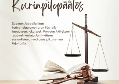 Huomautus Jari Hyttinen menettelystä – katse eteenpäin Porvoossa Suomen Jääpalloliiton kurinpitolautakunta on käsitellyt tapauksen, joka koski Porvoon Akilleksen päävalmentaja Jari Hyttisen sosiaalisessa mediassa julkaisemaa kirjoitusta. Erotuomarivaliokunnan pyynnöstä asiaa...