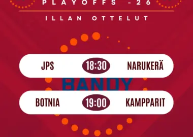 Illassa on pudotuspelien aitoa talvitaikaa. Mikkelissä ja Porissa syttyvät valot, katsomot täyttyvät ja jokainen hetki tuntuu tavallista painavammalta, kun miesten Bandyliigan puolivälierät jatkuvat perjantai-iltana. Kampparit ja Narukerä lähtevät...