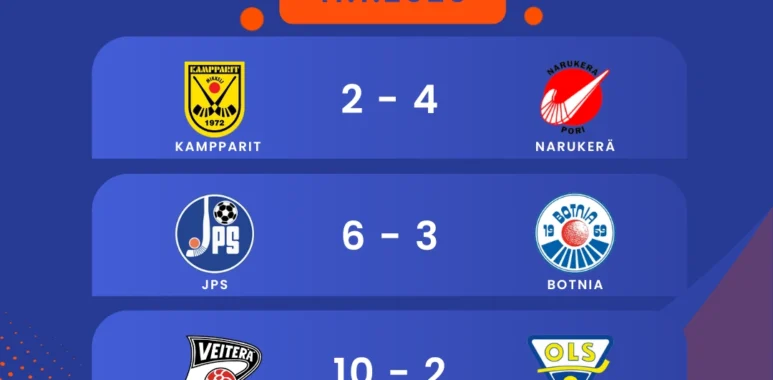 Ennakkosuosikit pitivät pintansa Bandyliigan runkosarja lähestyy loppuaan, ja asetelmat ylempään ja alempaan jatkosarjaan alkavat kirkastua. Lähes kaikki ennakkosuosikit ovat onnistuneet lunastamaan odotuksiaan, ja neljän parhaan joukkueen paikat ylemmässä jatkosarjassa sinetöityivät kun JPS, Veiterä, HIFK, ja Narukerä pelaavat ylemmänjatkosrjan ottelut, ja alemman jatkosarjan 2 playoffs joukkuetta haetaan nelikosta Akilles, Botnia, Kampparit ja OLS. . Vaikka suurin osa otteluista on sujunut odotetusti, Helsingissä nähtiin jännittävä kohtaaminen, jossa osa vieraskannattajista uskoi Akilleen mahdollisuuksiin kylvettää HIFK. Lopulta voiton vei kuitenkin kotijoukkue HIFK ja vahvisti asemaansa sarjataulukon kärkisijoilla. Kauden tähänastinen kulku on tarjonnut niin ennakoitua tasoa kuin yllätyksiä, ja jatkosarjoista odotetaan entistä tiukempaa kamppailua. Ensin kuitenkin maajoukkuetauko, ja sitten vielä viimeinen kierros. Toki täytyy muistaa, että huomenna pelataan vielä Botnia vs OLS – ottelussa ei sen suurempaa panosta ole, koska molemmat seurat jatkavat alemmassa jatkosarjassa. Kampparit vs Narukerä Lopputulos: 2-4 Narukerä ratkaisi voiton Mikkelissä – Kamppareille kirvelevä tappio Mikkelissä nähtiin tänään tiukka ja tunteikas kamppailu, kun Kampparit isännöi Narukerää. Kotijoukkue aloitti vahvasti, pelaten tasapainoista ja energistä peliä, mikä piti ottelun jännittävänä aina 60. minuutille saakka. Tilanteen ollessa 2-1 ja paineen kasvaessa, Narukerän Ville Aaltonen nousi ratkaisijaksi. Hän iski kaksi nopeaa maalia, jotka sinetöivät vierasjoukkueelle tärkeän 2–4-voiton. Kamppareille tulos oli kova pettymys, sillä joukkue taisteli mallikkaasti koko ottelun ajan, mutta terävämpi Narukerä vei pisteet kotiin. Ottelun kulku heijasteli joukkueiden välistä tasaista voimasuhdetta. Kampparit onnistuivat luomaan hyviä maalipaikkoja, mutta viimeistelyssä Narukerä oli askeleen edellä. Aaltosen tehokkuus ottelun ratkaisuhetkillä oli lopulta se tekijä, joka vei voiton vierasjoukkueelle. JPS vs Botnia Lopputulos: 6-3 JPS rutiinilla voittoon – Botnialle vaikeuksia jaksamisen kanssa Jyväskylässä pelattu JPS:n ja Botnian välinen ottelu eteni pitkään tasaisissa merkeissä, mutta lopulta kotijoukkue otti selkeän 6–3-voiton rutiiniluistelulla ja tehokkaalla viimeistelyllä. Botnia taisteli hyvin ensimmäiset 50 minuuttia, vaikka joukkueen kokoonpanon kapeus asetti haasteensa. Yhden vaihtopelaajan mukana olo alkoi kuitenkin näkyä ottelun loppupuolella, kun JPS lisäsi tempoa ja hyödynsi fyysistä ja taktista etuaan. Voitolla JPS vankisti asemiaan sarjan kärjessä ja osoitti olevansa valmis koveneviin jatkosarjataistoihin. Botnialla sen sijaan riittää pohdittavaa ennen seuraavia otteluita. Veiterä vs OLS Lopputulos: 10-2 Veiterä dominoi kotikentällään – OLS:lle vaikea ilta Lappeenrannassa nähtiin yksipuolinen näytös, kun Veiterä murskasi OLS:n lukemin 10–1. Ottelu oli kotijoukkueelle erinomainen tilaisuus harjoitella maalintekoa, sillä OLS ei pystynyt kunnolla haastamaan isäntiään missään vaiheessa. Veiterä otti ohjat alusta alkaen ja hallitsi peliä sekä pallollisesti että luistelullaan. Kotijoukkue onnistui laajalla rintamalla, ja maalintekovastuu jakautui useille pelaajille. Ottelun ratkaisu oli käytännössä selvillä jo ensimmäisen puoliajan jälkeen, kun Veiterä oli siirtynyt vakuuttavaan johtoon. OLS:lla oli vaikeuksia päästä peliin mukaan, eikä joukkue löytänyt keinoja Veiterän tehokkaan hyökkäyspelaamisen pysäyttämiseen. HIFK vs Akilles Lopputulos: 5-3 HIFK varmisti ylemmän jatkosarjapaikan – Akilles taipui vaikka taisteli toisella jaksolla Kalliossa nähtiin jännitystä ja tunteita täynnä ollut ottelu, kun HIFK ja Porvoon Akilles taistelivat ylemmän jatkosarjan paikasta. Porvoolaiset saapuivat sankoin joukoin hakemaan tärkeää voittoa, mutta kotijoukkue HIFK oli päättänyt toisin. HIFK aloitti ottelun räjähtävästi Patrik Huberin johdolla. Huber iski kahdesti vain neljässä minuutissa, ja kotijoukkue otti heti tiukan otteen pelistä. Ensimmäisen jakson loppuun Huber kruunasi iltansa pukukoppimaalilla, vieden HIFK:n tauolle vahvassa 3–0-johdossa. Toisella jaksolla Akilles ei kuitenkaan antanut periksi. Myötätuulen siivittämänä vieraat nostivat tempoa ja onnistuivat nousemaan 77. minuutilla 4–3-tilanteeseen. Porvoolaisten kirivaihe herätti toivon Akilleen katsomonosassa, mutta HIFK:n Aku Ojanen varmisti kotijoukkueen voiton 80. minuutilla, laukomalla ratkaisevan 5–3-maalin. Loppuhetkillä Akilles hallitsi peliä ja haki vimmatusti kavennusta, mutta HIFK puolusti tiiviisti koko joukkueena ja onnistui pitämään vieraansa loitolla. Kotijoukkueen päättäväisyys ja kurinalainen puolustuspelaaminen takasivat lopulta voiton ja paikan ylemmässä jatkosarjassa. Porvoolaiset joutuivat lähtemään pettyneinä kotimatkalle, sillä tappio tarkoitti heidän mahdollisuuksiensa haihtumista tuhkana tuuleen ylemmän jatkosarjan suhteen – he jatkavat yllättäen pelejään alemmassa jatkosarjassa. BandyliigaToimitus uskoo että tätä kukaan odottanut kauden kynnyksellä. Kuten joukkueen valmentaja Juha Laitinen kommentoi, JPS:n takana viisi joukkuetta hakee Suomen mestaruutta…