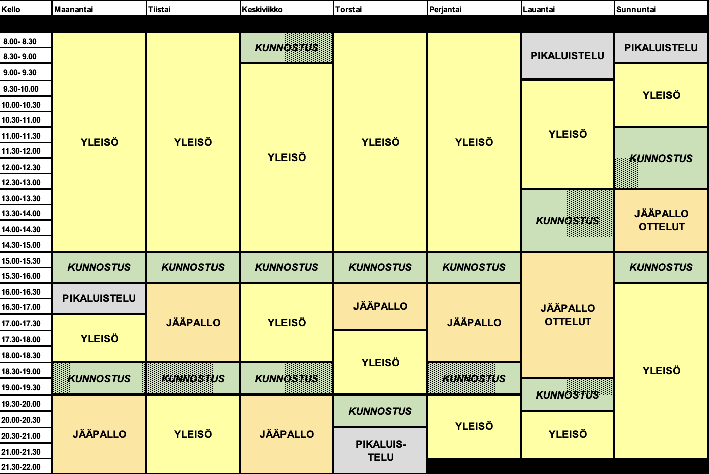 - Tiistaina Helsingin ruuhkissa kun pääset 16:00 töistä, on mahdoton saapua kentälle, lämmitellä, ja pukea varusteet ajoissa tähän vuoroon & Lisäksi jälleen toinen seura huonolla jäällä vain yhden tunnin