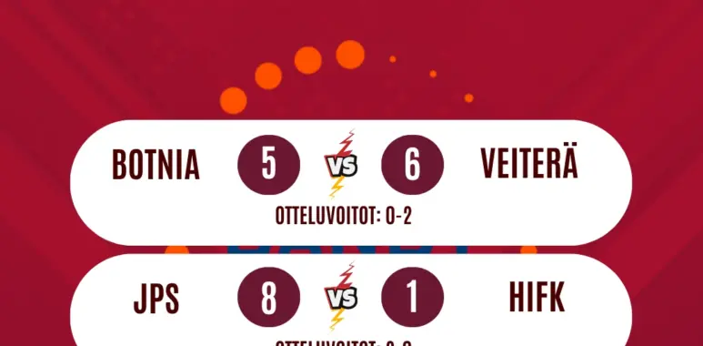 Botnia–Veiterä tarjosi draamaa ja sitkeyttä: vaikka Veiterä nappasi voiton viime hetkillä, Botnian nousu 1–4:stä tasoihin kertoo joukkueen luonteesta ja siitä, ettei siellä luovuteta missään vaiheessa. Ja Veiterälle iso hatunnosto siitä, että se jaksoi tehdä ratkaisun vielä lisäajalla – tuollaiset voitot rakentavat uskoa kevään peleihin.